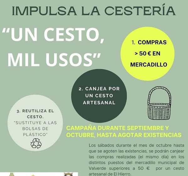 El Ayuntamiento de Valverde desarrolla el segundo proyecto “Impulsa la cestería”, enmarcado en el programa de desarrollo rural sostenible del Gobierno de Canarias para municipios de menos de 10.000 habitantes. La iniciativa incluye dos acciones principales: ![]() 1. Talleres de iniciación a la cestería de mimbre, que se celebrarán en octubre en dos turnos (13 al 17 y 20 al 24), con la participación de artesanos locales y un máximo de diez alumnos por curso; y con el objetivo de recuperar y transmitir la técnica tradicional de la cestería a nuevas generaciones. 2. Campaña “Un cesto, mil usos” en el mercadillo municipal, que se desarrollará durante los sábados de octubre. Los clientes que realicen compras superiores a 50 euros podrán canjearlas por un cesto de mimbre, hasta agotar existencias. ![]() La acción busca fomentar el uso del cesto como alternativa sostenible al plástico. El alcalde de Valverde, Carlos Brito, destacó la importancia de la iniciativa: “Con este proyecto queremos mantener vivas nuestras tradiciones. La cestería es parte de nuestra identidad y con estos talleres conseguimos que no se pierda”, dijo. |