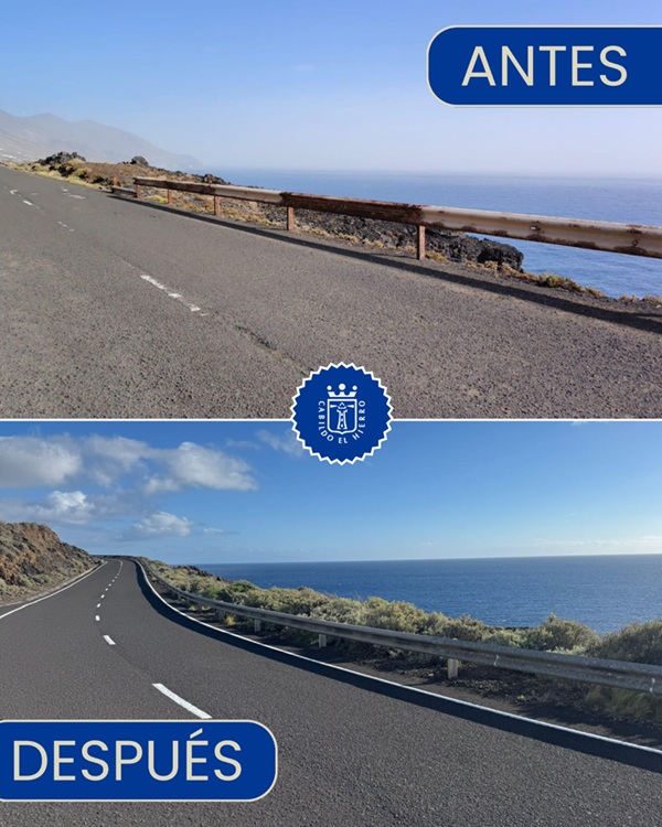 El Cabildo de El Hierro, a través del Área de Infraestructuras, Mantenimiento, Obras y Carreteras, ha ejecutado una actuación de mejora de la seguridad vial en la carretera HI-30 (Las Playas), centrada en la renovación de la señalización horizontal y la reposición de los elementos de contención. La intervención, desarrollada en colaboración con la empresa pública GESPLAN, ha contado con un presupuesto de 21.912,36 euros y se ha llevado a cabo en el tramo comprendido entre la conexión con la carretera HI-2, en la rotonda de acceso al Puerto de La Estaca, y la entrada del Hotel Parador de El Hierro. Los trabajos de señalización horizontal han sido ejecutados por la empresa Tevaseñal S.A. e incluyen la pintura de marcas viales laterales y centrales, realizadas con pintura acrílica reflectante de 10 centímetros de ancho. Asimismo, se ha procedido a la señalización de dos plazas de estacionamiento reservadas para personas con movilidad reducida, 21 plazas de estacionamiento en batería y seis pasos de peatones, mejorando la visibilidad y la seguridad tanto para vehículos como para peatones. ![]() Paralelamente, en este mismo tramo, personal propio del Cabildo de El Hierro está llevando a cabo la reposición de las vallas de contención de la carretera, que presentaban un notable deterioro debido al paso del tiempo y a la cercanía a la costa. Esta actuación ha permitido un ahorro para la administración insular mediante la reutilización de vallas procedentes de otros tramos de la red viaria, apostando por una gestión eficiente de los recursos públicos. La consejera del Área de Infraestructuras, Mantenimiento, Obras y Carreteras, Ana González, ha destacado que “esta carretera necesitaba una intervención urgente por el deterioro causado por el tiempo y el salitre. Se ha actuado con rapidez, utilizando en gran medida medios propios y logrando, además, un ahorro económico para la administración. El resultado es una vía mejor señalizada, con mayor seguridad y visibilidad, muy utilizada tanto por vecinos como por quienes visitan la isla”. |