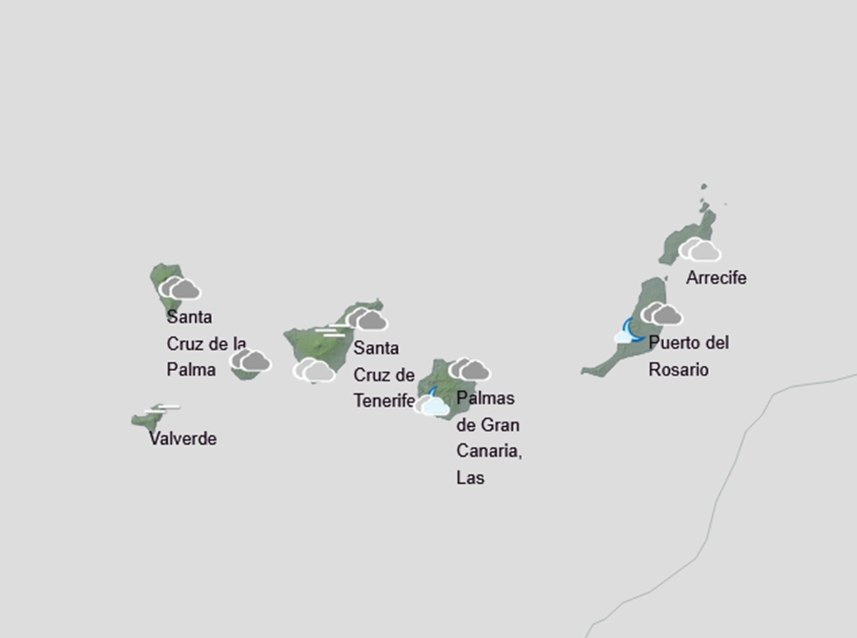 La Agencia Estatal de Meteorología pronostica para este martes, 14 de octubre, en El Hierro que habrá predominio de intervalos de nubosidad alta y baja con formación de nubosidad de evolución diurna cuando no se descartan precipitaciones débiles, aisladas y ocasionales. Temperaturas con pocos cambios. Viento flojo con predominio del régimen de brisas, según datos de la Aemet recogidos por DIARIO EL HIERRO. En Canarias, hoy se prevé predominio de intervalos de nubosidad alta y baja con formación de nubosidad de evolución diurna en las islas de mayor relieve, donde no se descartan precipitaciones débiles, aisladas y ocasionales. Temperaturas con pocos cambios, salvo ligero descenso de las mínimas en las islas más orientales. Viento flojo en general del nordeste en la provincia oriental y del este en la occidental, acoplado con el régimen de brisas. En altas cumbres, viento moderado del suroeste, así como en cumbres de Gran Canaria, según el pronóstico de la Aemet recogido por DIARIO EL HIERRO. |